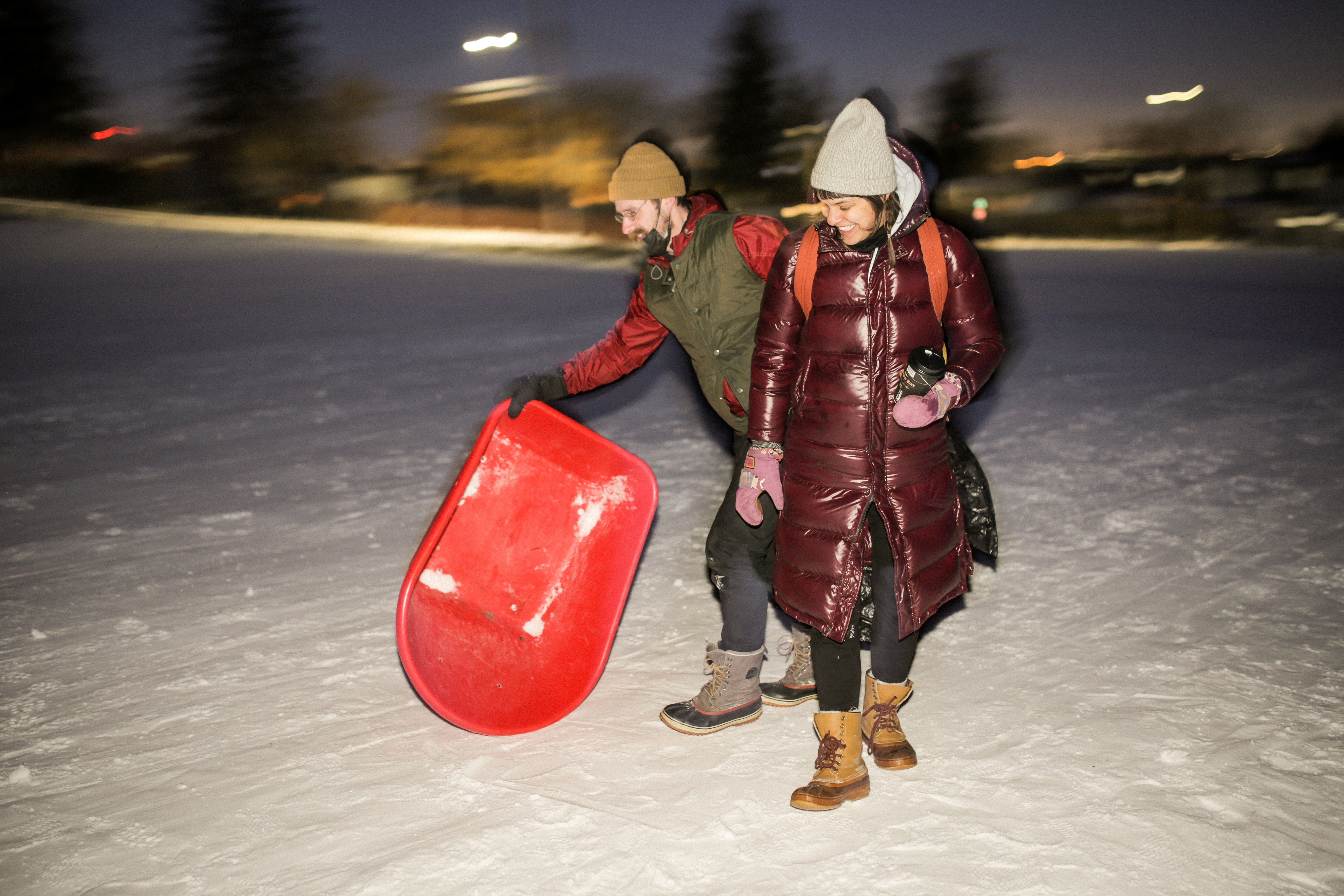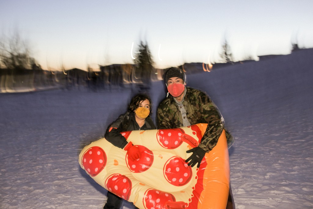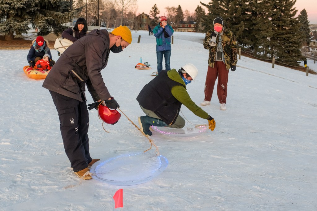 Drea Hunt & Andre Rodrigues toboggan. Photo by Allison SetoMatt & Mark’s ice saucers!Ice saucer break up! Photo by Allison Seto