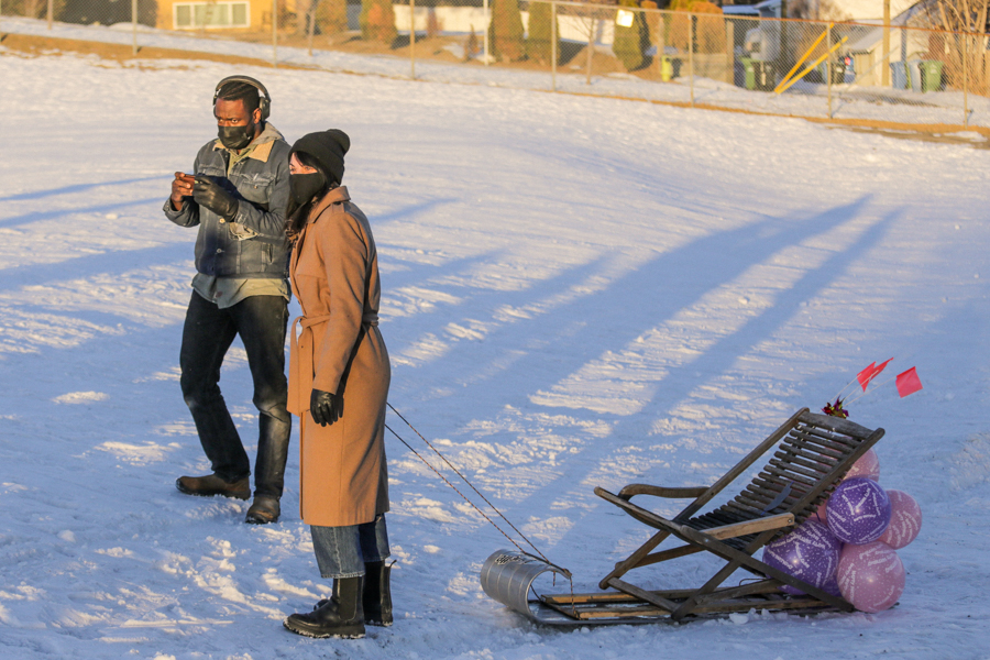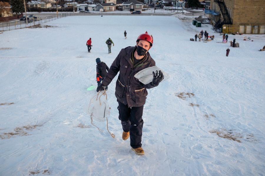 The final fate of Khalid’s toboggan. Photo by Nikki TambourineCaitlind’s Magic CarpetLogan’s Chairstream