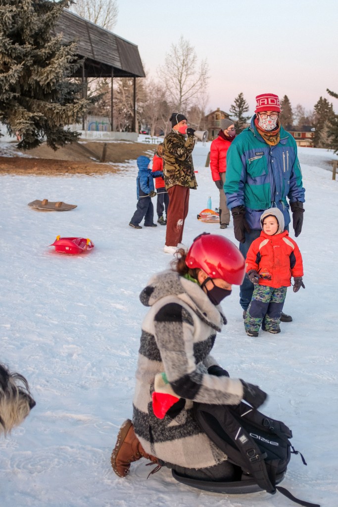 For the second theme of this year’s Hibernation Project, Mike Tan suggested a tobogganing race with homemade sleds – a safe(ish) and socially distanced activity where we could spread across a public park and feel the rush of speed together! We couldn’t have wished for a more perfect day, or a lovelier bunch of folks. Thank you to everyone who participated, as sledders or observers.