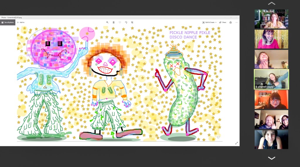 Part competition and part collaboration, these drawings became as bizarre as the mood of the evening, offering a digital twist on the familiar classic of drawing games at the pub or Breakfast Party gatherings.