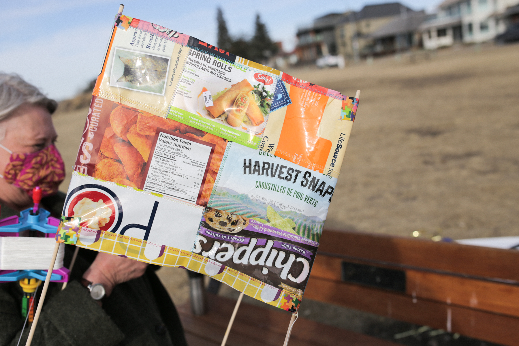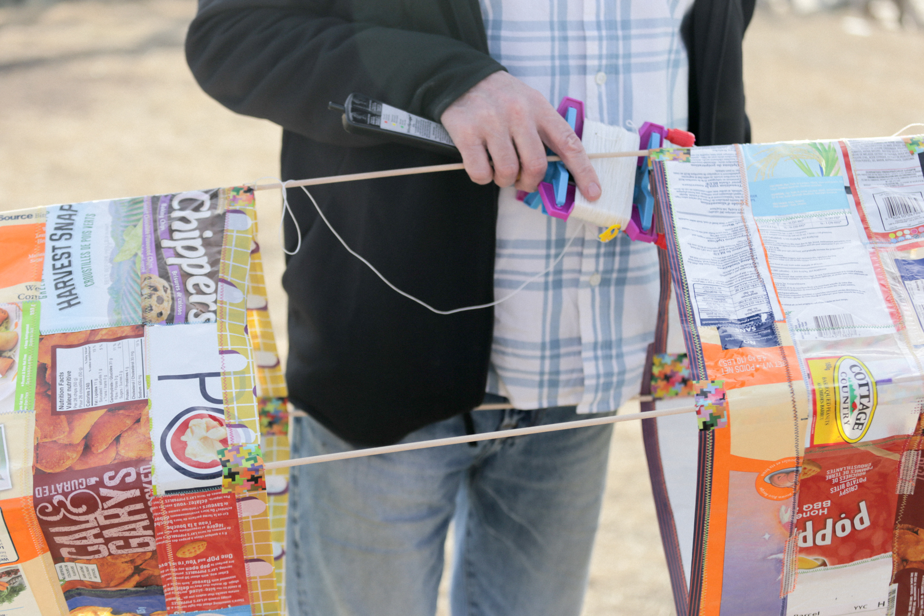Barb Drake’s kite, constructed from sewn packaging materials
