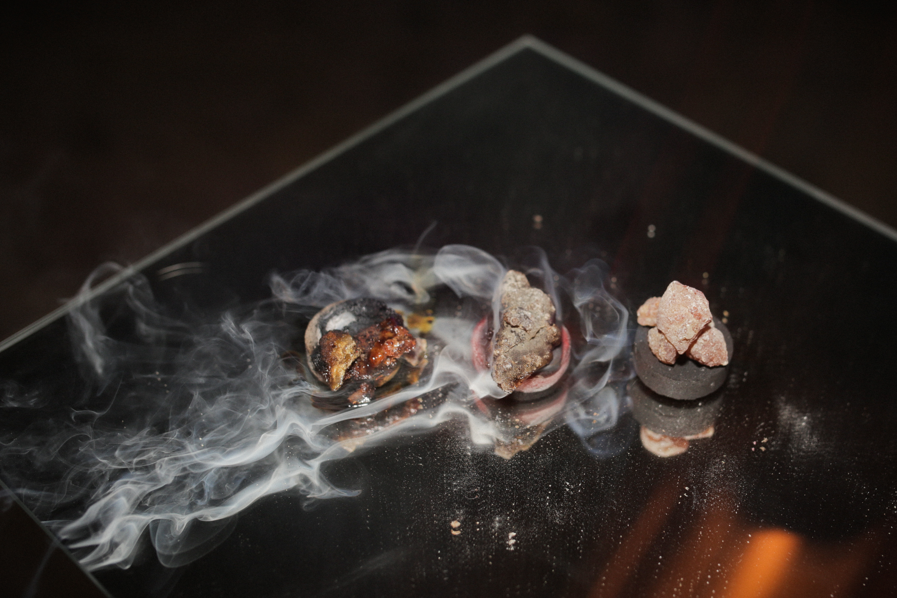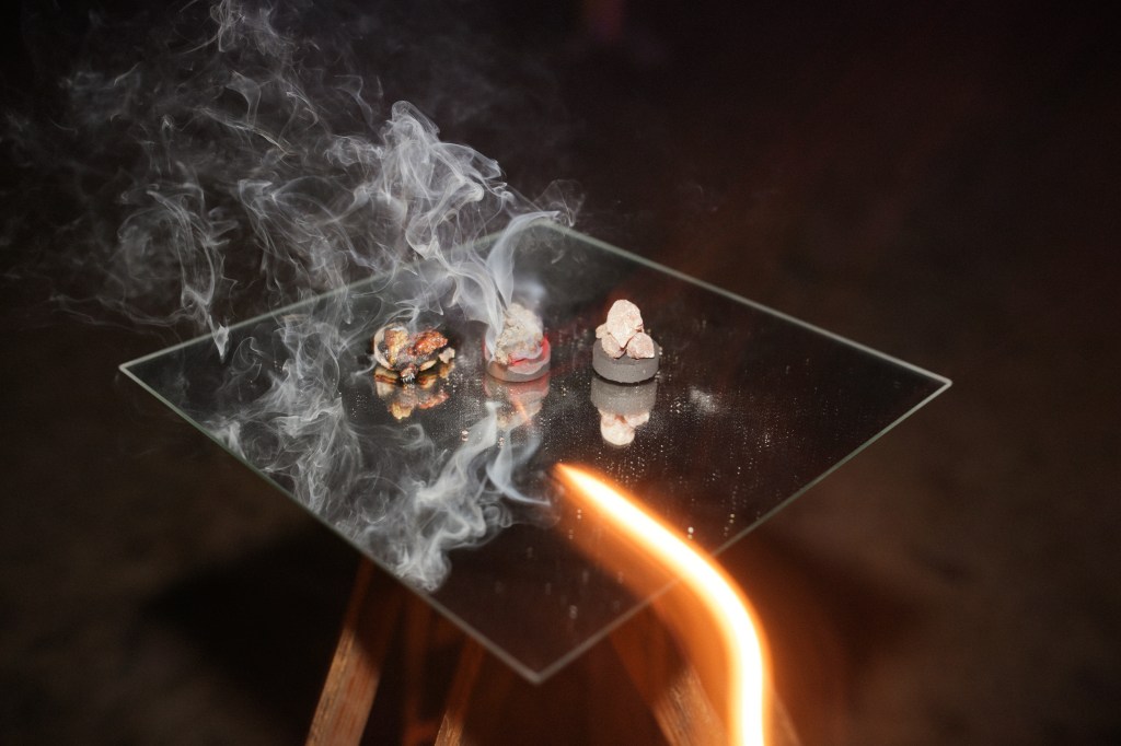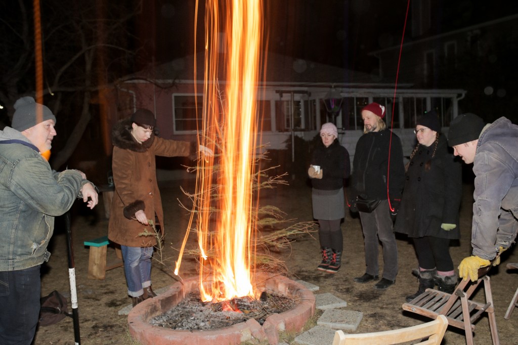Susan Clarahan sent an offering of sparkling charcoals and Rocky Mountain pitch, carefully packaged and mailed from her residence in Toronto. As heat melted the pitch, plumes of aromatic smoke washed over the yard – a beacon of smells and gentle light.