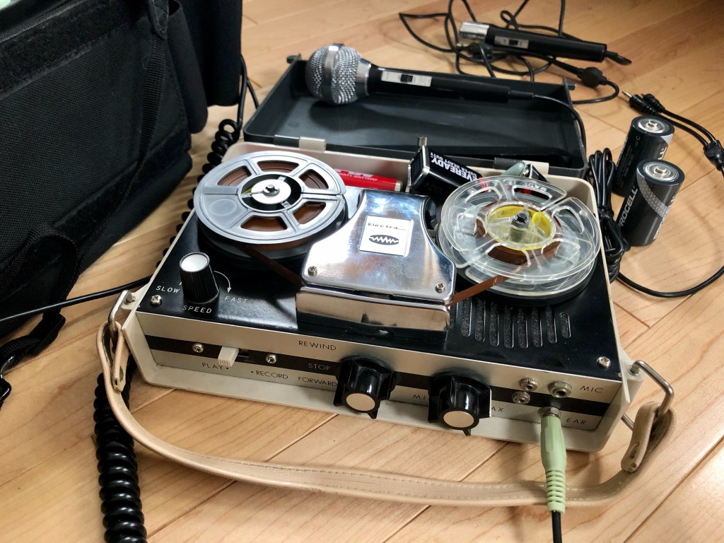 The second piece was recorded in January 1999 and implicated the sci-fi possibilities of time travel. This 23-year-old recording captures sounds from an episode of the original Star Trek about time travel back to the 1950’s when the reel-to-reel tape recorder was made. When re-recorded in 1999, Noel physically time-warped the track using the speed knob and his fingers to slow down the tape and speed it up, doing the inverse to time when the tape is played back. Listening back over 2 decades later, one hears not only the pop-culture source material from a pre-millenium era, but a fictional attempt to travel through time, layered onto the reality of time passing since the recording was made in 1999, captured physically on a material from another time: analog tape. How does time travel through us and around us – captured in fictions, encased in material (slowly degrading), and elapsing in fact?