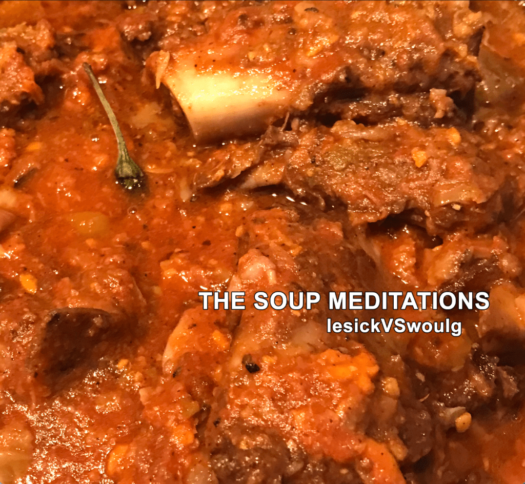 The Soup Meditations are an experimental collaboration between artists Kurtis Lesick and Woulg (Greg Debicki) for the radio show “Ears Have Eyes”. As Lesick recalls, the project came out of a rather serious inquiry he had been doing on the philosophies of Hegel, Heidegger, Levinas, Nancy, Barad, and others. In this instance he was specifically focussed on thinking through elements of time in relation matter and mattering. As he was writing the initial text it absolutely refused to take itself seriously — the more profound the text tried to be the more abstract and meaningless it became. Hegel had a philosophical technique called “letting” (lassen) where you let the thought compose itself without presupposition or intent. Lesick threw away all the quotes and research and just began writing about what was “there” letting the phenomena around him do the thinking for him. The result is this text on soup, banality, time and human condition (but mostly on soup). The piece was then sent to Woulg to instinctively interpret playing with cadence, time, space, and materiality in sound.