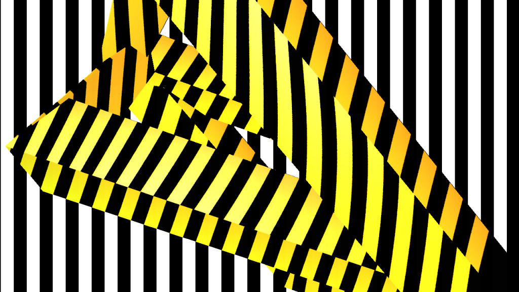 Inspired by the painted white and yellow lines present within many parking environments, Order and Chaos reimagines the rigidity, temporary proprietorship and implied order within these spaces. Climbing into the back of an unassuming rental truck, the audience enters into a hypnotic landscape of geometry and illusion, where the straight and confining lines of the outside parking lot blur into a chaotic world of morphing shapes and ever-shifting perspectives.