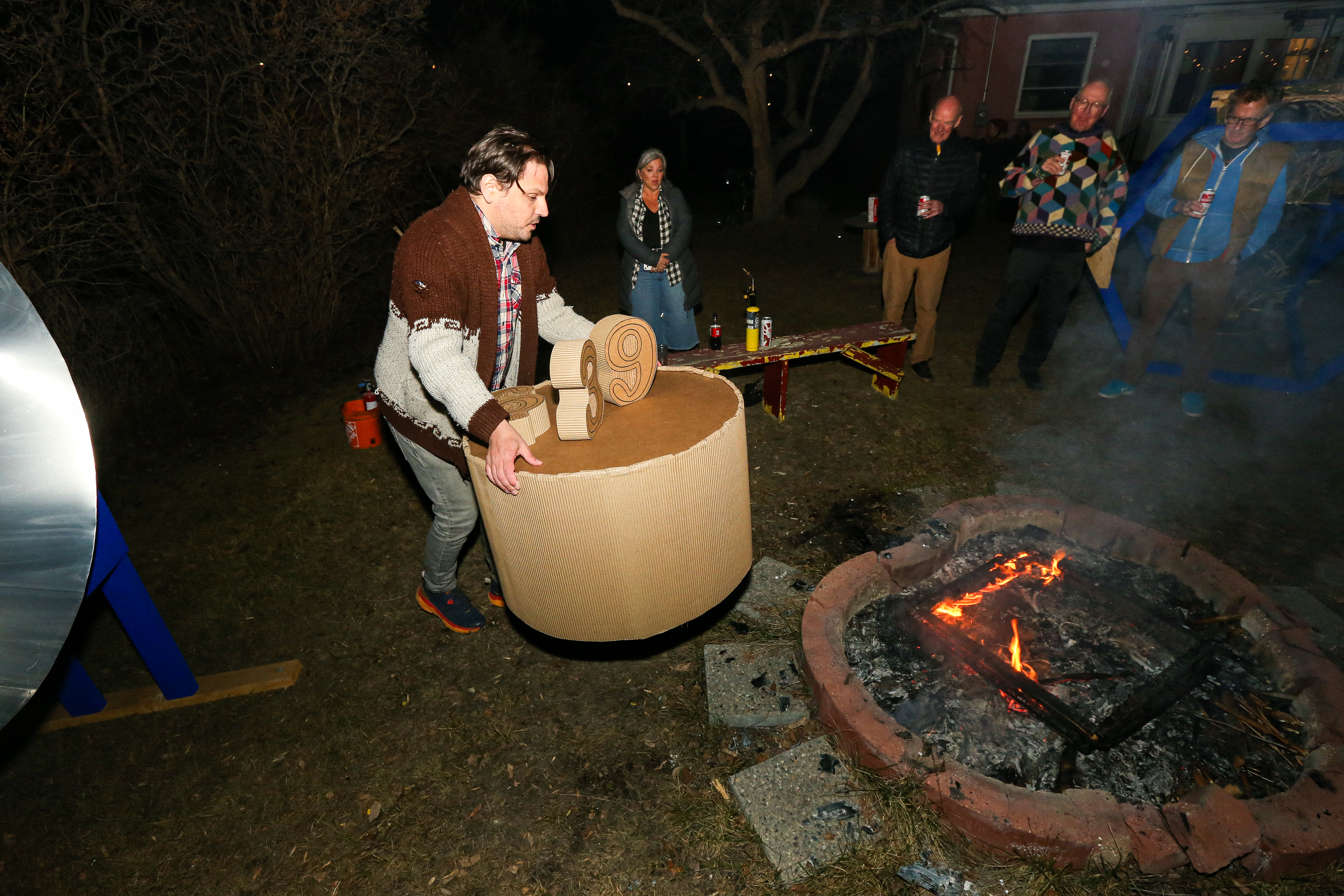 Next on the fire was a cardboard Birthday cake by Eric Heitmann. The piece was part celebratory gesture for the artist’s 39th Birthday, part effigy for the last 3 not-so-great years.