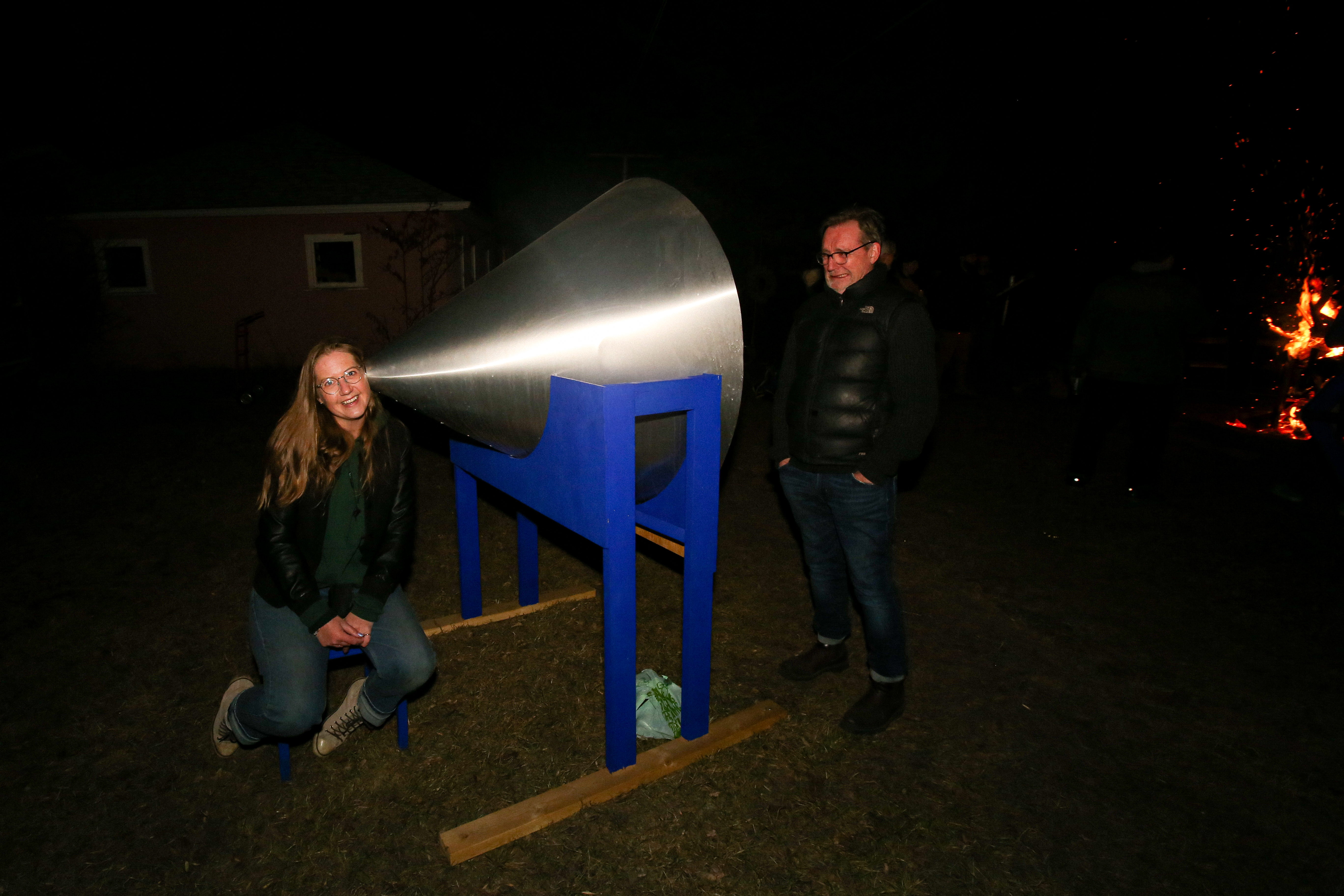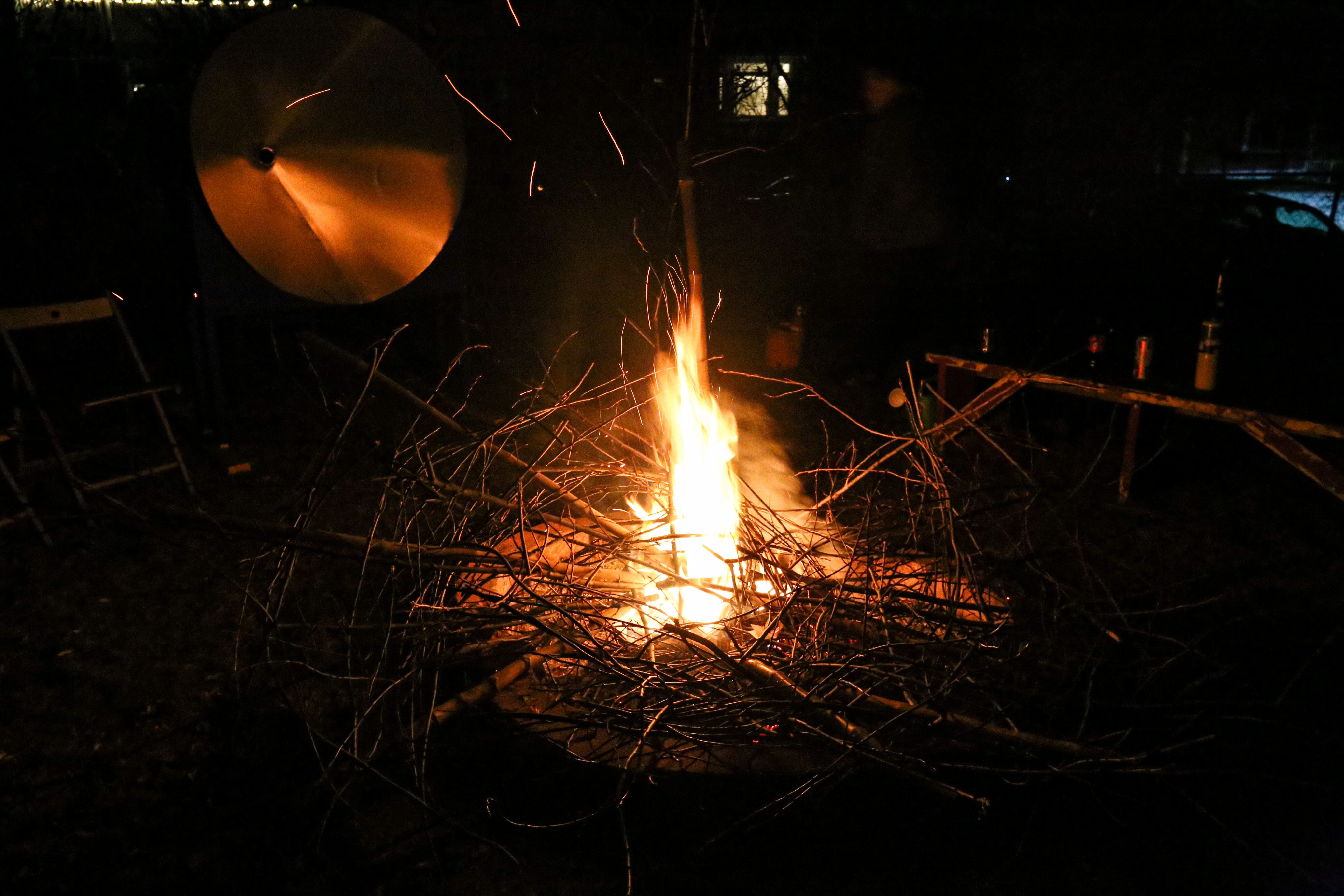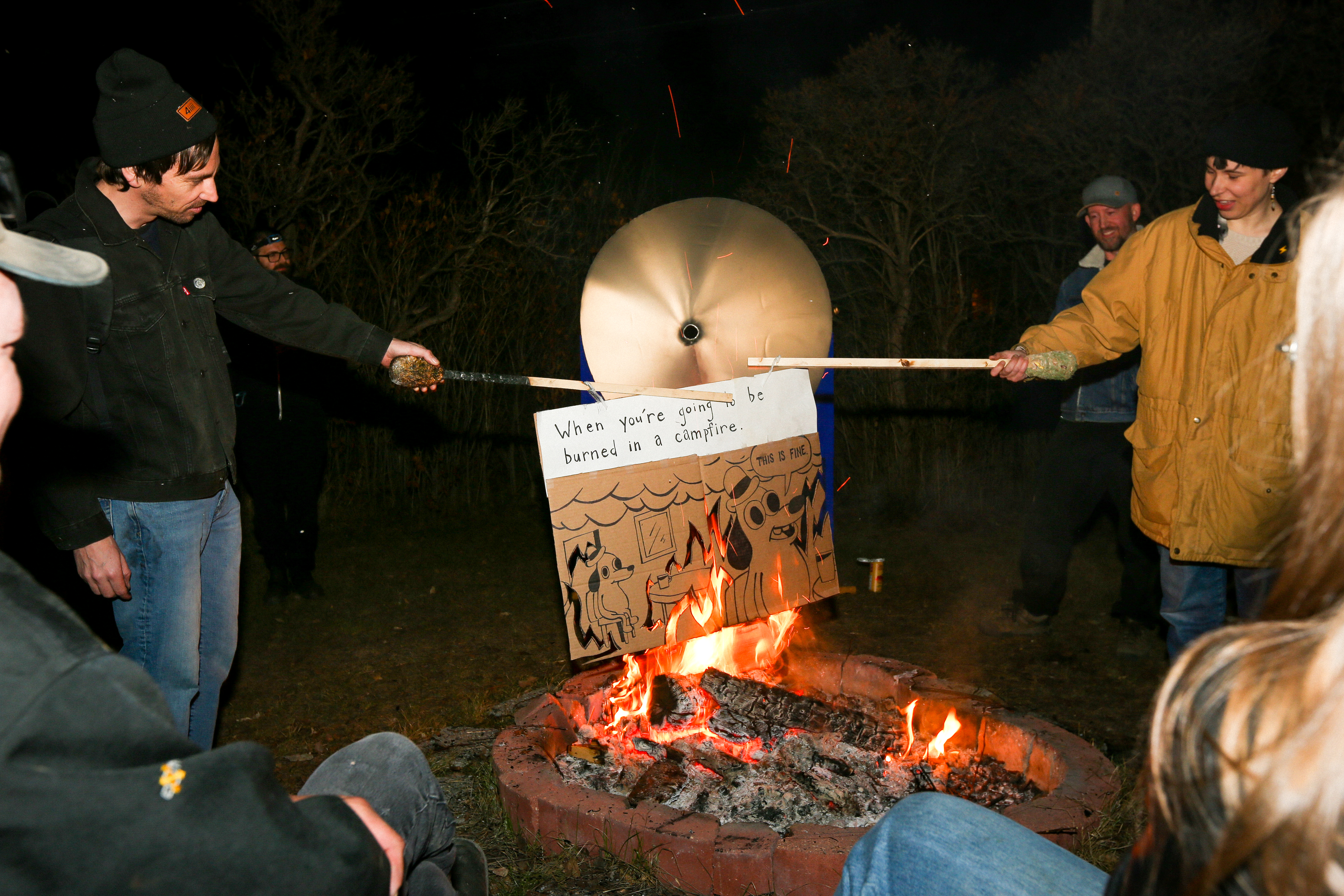 During the entire sculpture burn, Caitlind Brown & Wayne Garrett’s listening devices (from a previous art installation) were aimed at the flames. Friends snuck away at different moments to listen to the fire crackling.