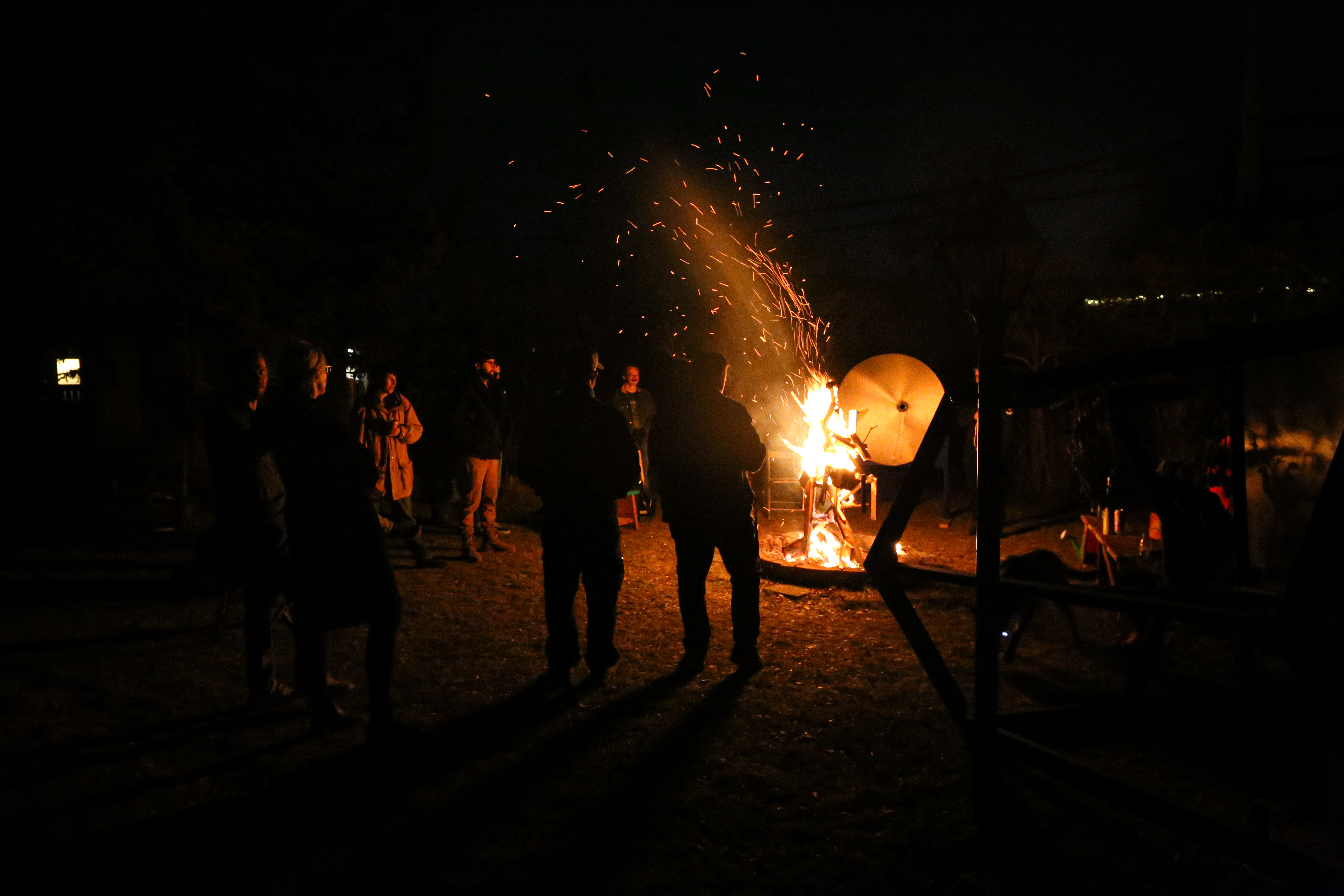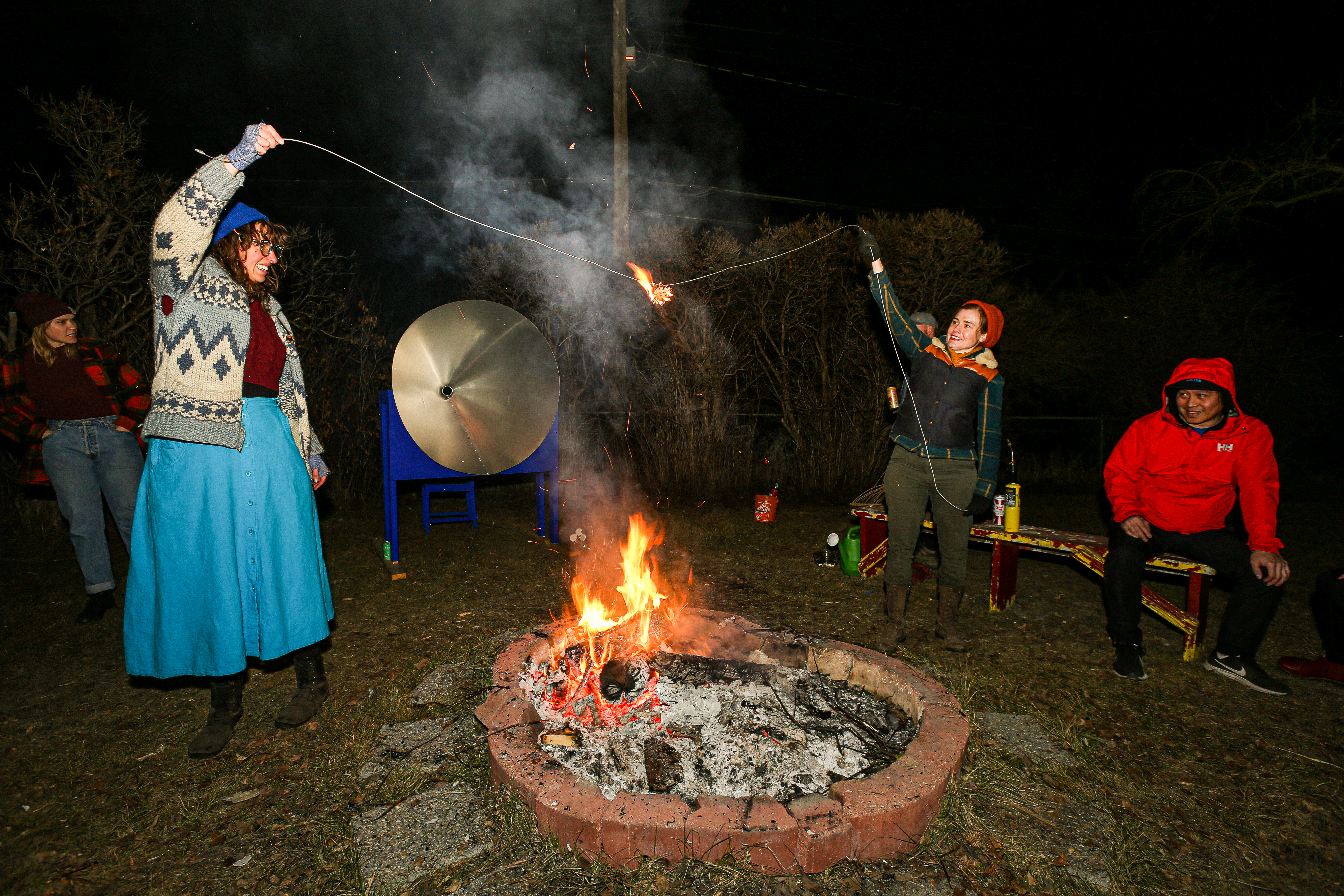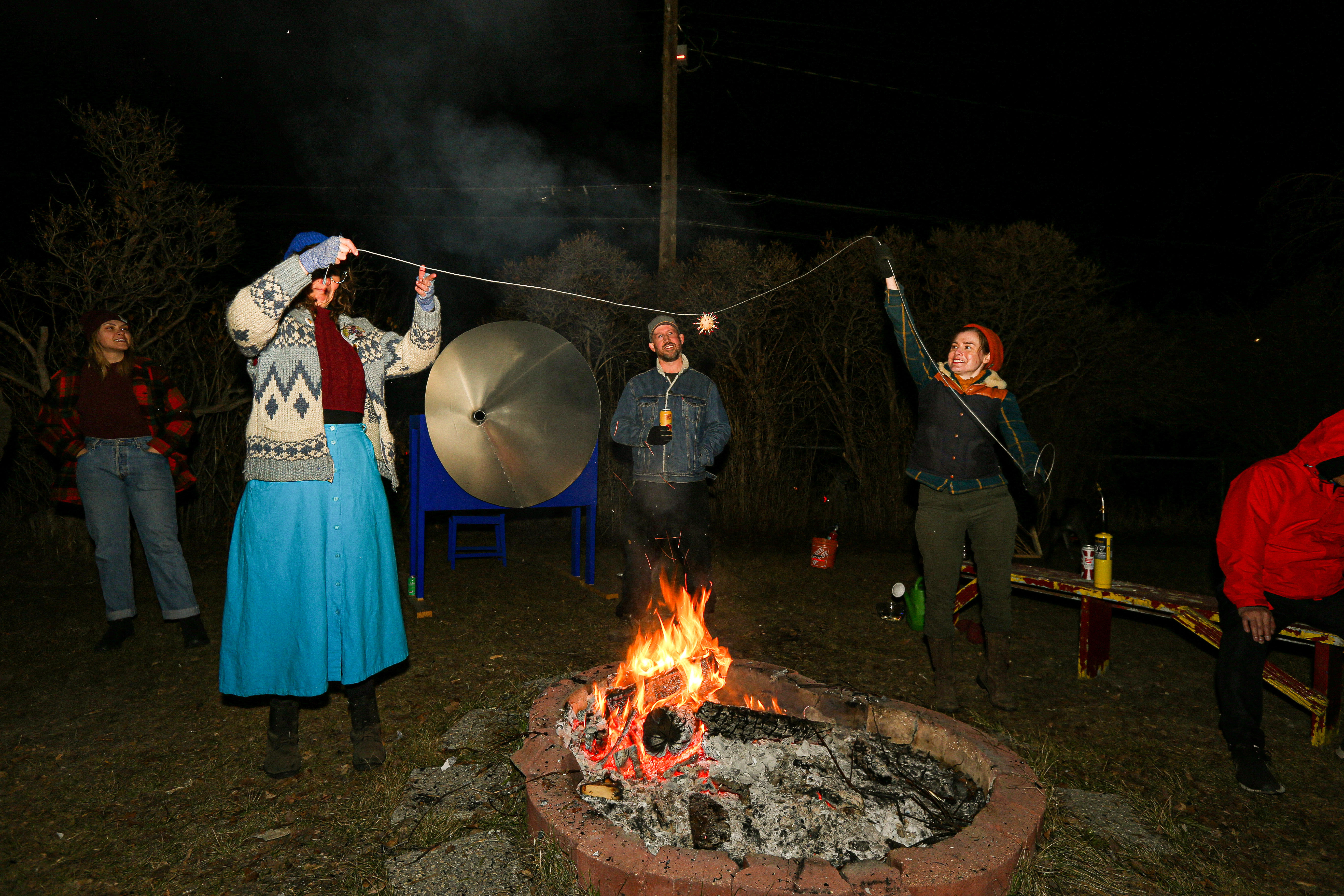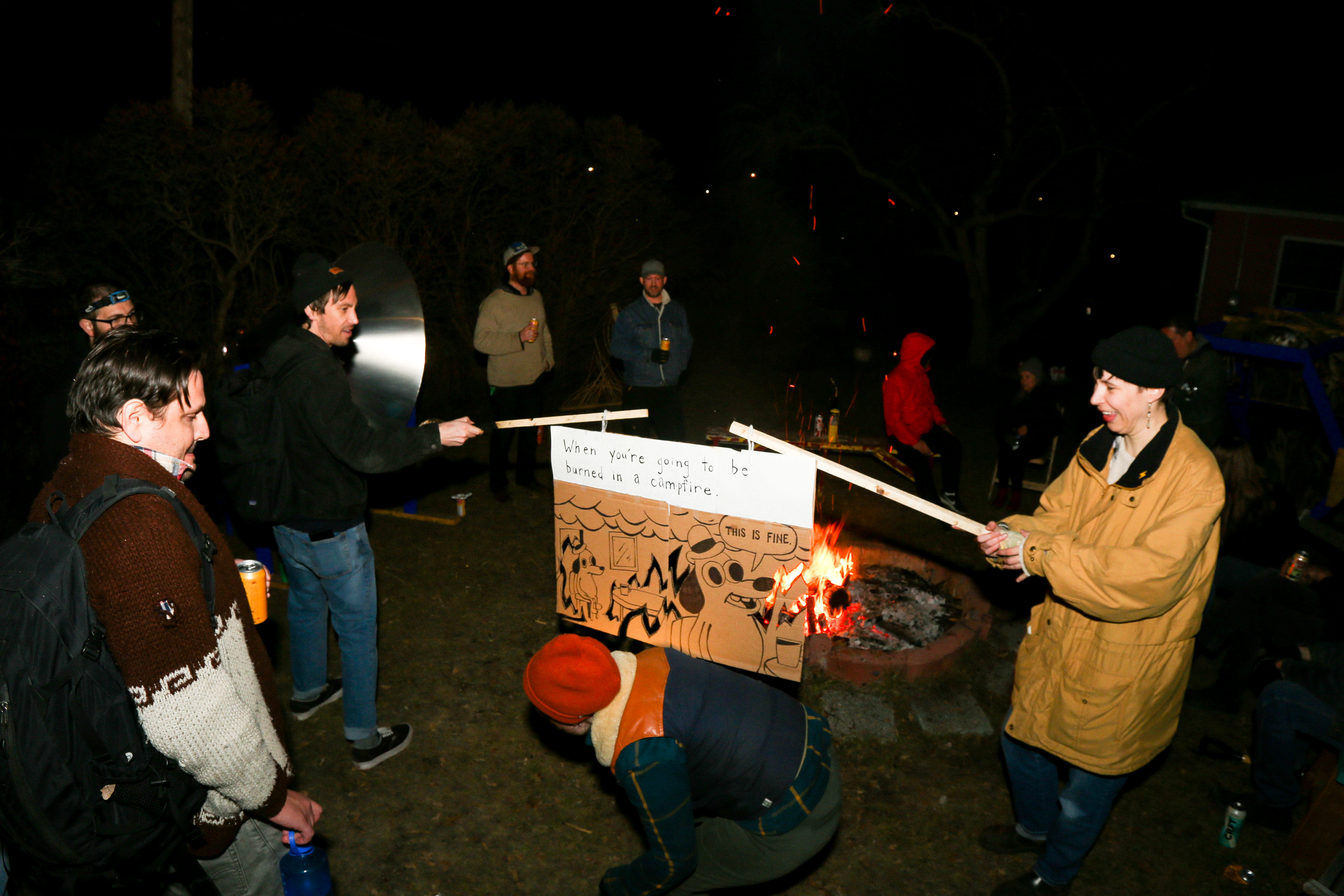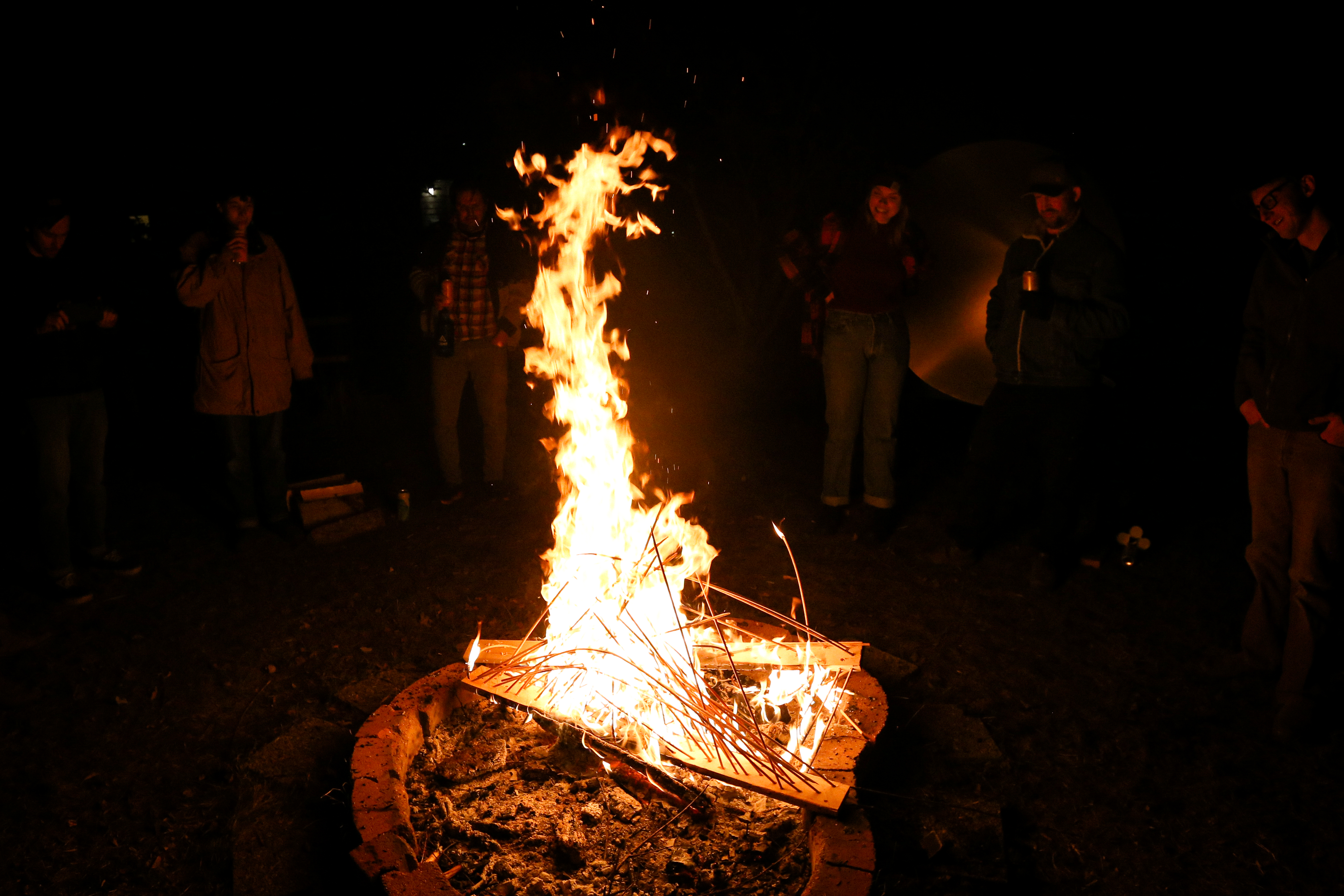 Every year, we host a fiery art tribute to our late, great friend & fellow artist Matthew Mark Bourree. Participating artists make sculptures out of wood or cardboard, and we burn them together in a communal ritual ringing in the Spring. Hearkening to primal relationships, GATHER BY FIRE was named for an artwork by Sarah Smalik & Matthew Mark, and speaks to the great and mystical magnetism of people towards light, heat, and each other.