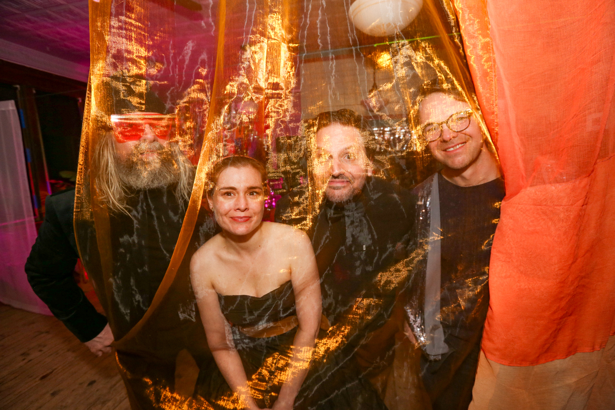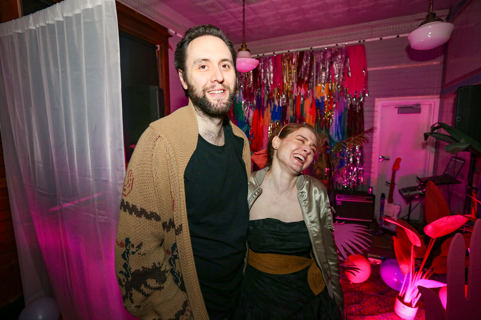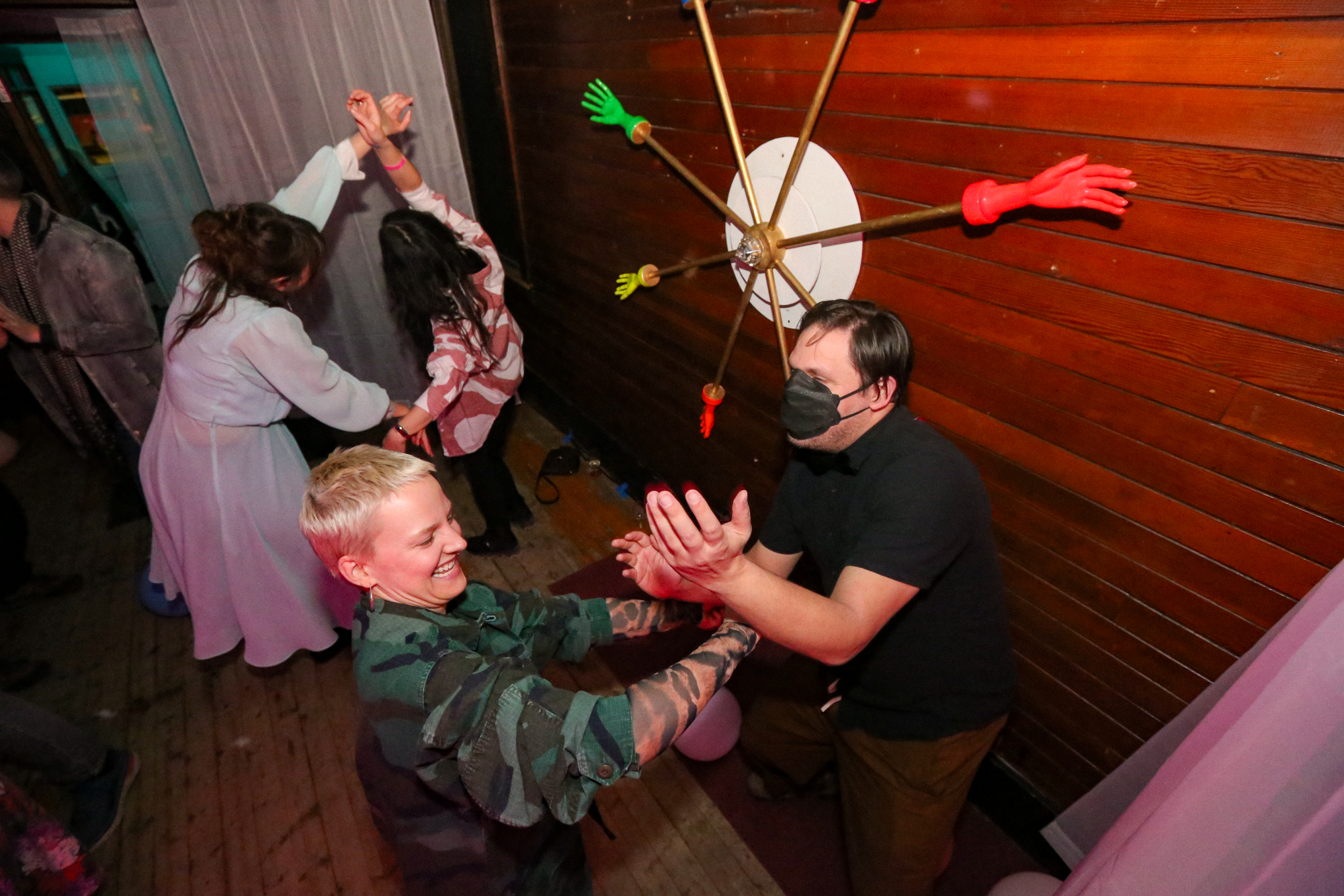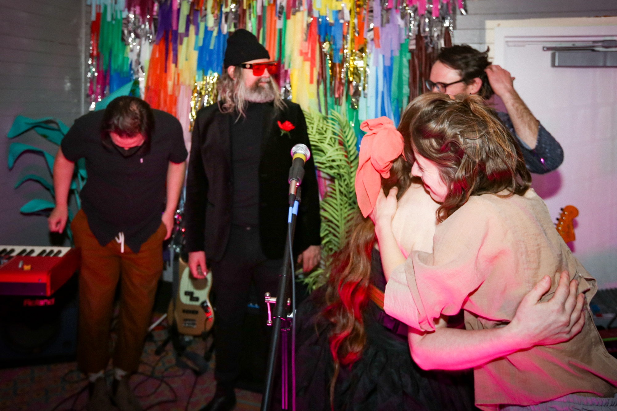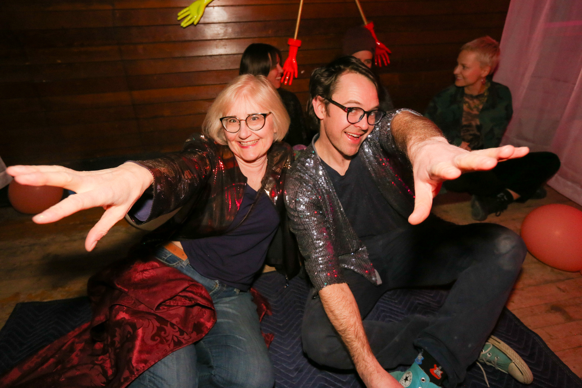 Rebecca Reid, Desiree Nault, and Caitlind Brown led the project of sculpting cSPACE Eau Claire into the ideal venue for a slow dance: complete with streamers, a glowing triple-level punch fountain, luminous curtains, and warm light. Wayne Garrett and Ryan Bourne contributed to aesthetics, but – in particular – guided the sounds unfolding over our evening of Heat Seeking.