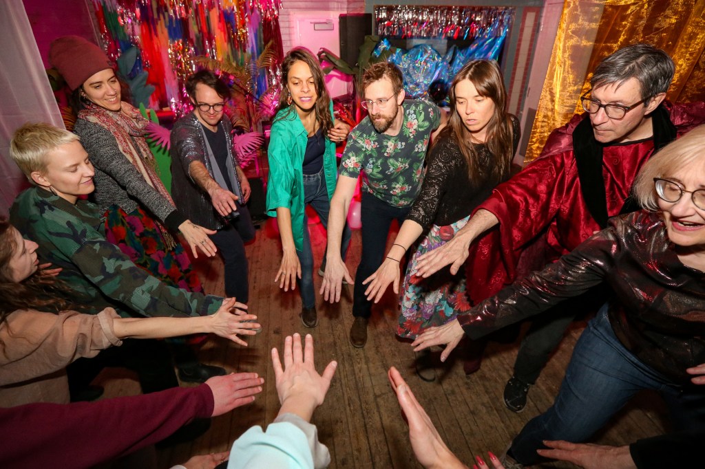 For a few brief songs, the room was plunged into darkness, and dancers were invited to move freely – keeping their eyes closed, if they dared, and trying to sense the people around them by touch and heat… literally, heat-seeking.