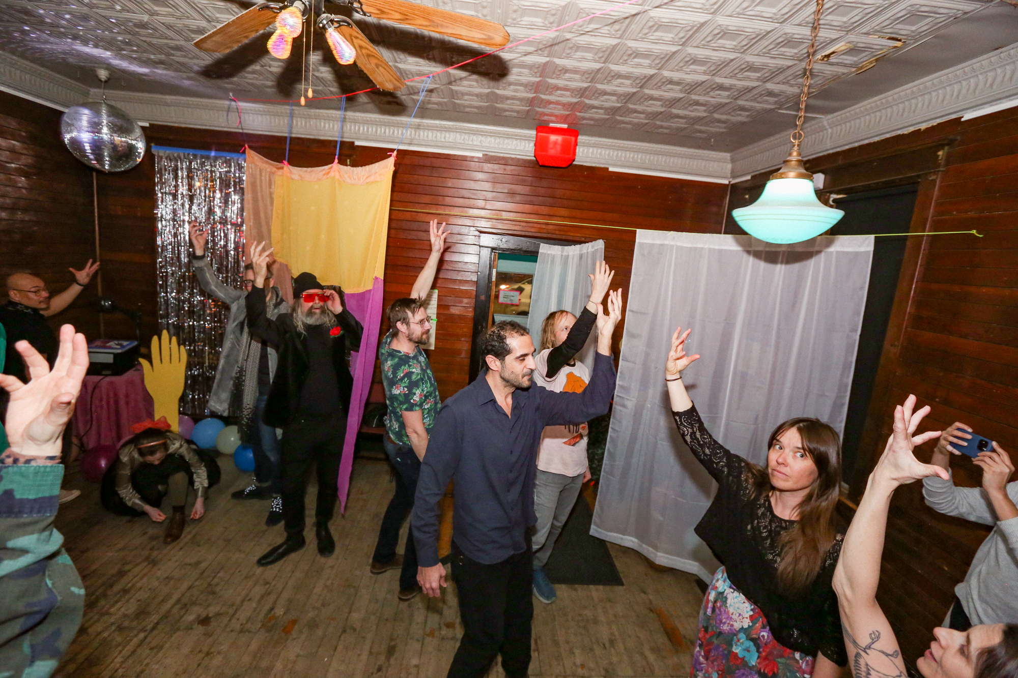 This year, we welcomed the return of the slow dance! Featuring a live band and communal movement games, this performative slow dance invited new and experienced dancers to embrace a poetic relationship to the art of moving their body alone, with, and in front of others by participating in movement games and exercises. The theme of this edition was Hiding & Seeking.