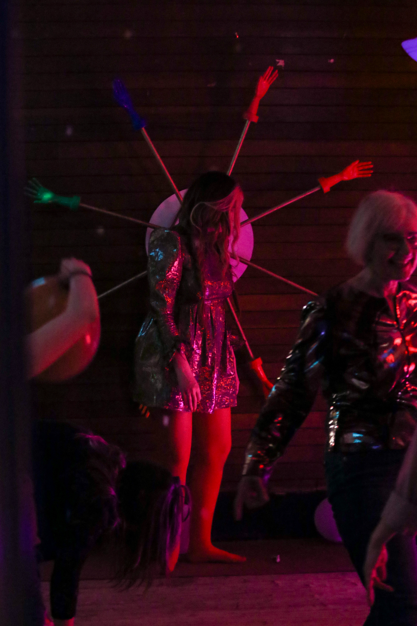 Eventually, some light was rekindled, and dance props were introduced – including Moon Mirrors made by Caitlind (literally reflecting the full moon in the sky above) and shimmery space blankets from Rebecca.