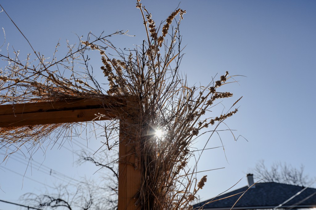 The final piece of the night was created by Caitlind Brown. A portal had been constructed from grasses and dried garden trimmings – clear cut in preparation for Spring.