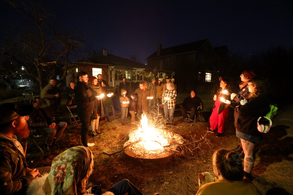This year, our lovely neighbours Dale Meyer, Veronica Murphy, and their rad kid Sadie started us off with a hedgehog-kitty – a fire-starter of sorts.