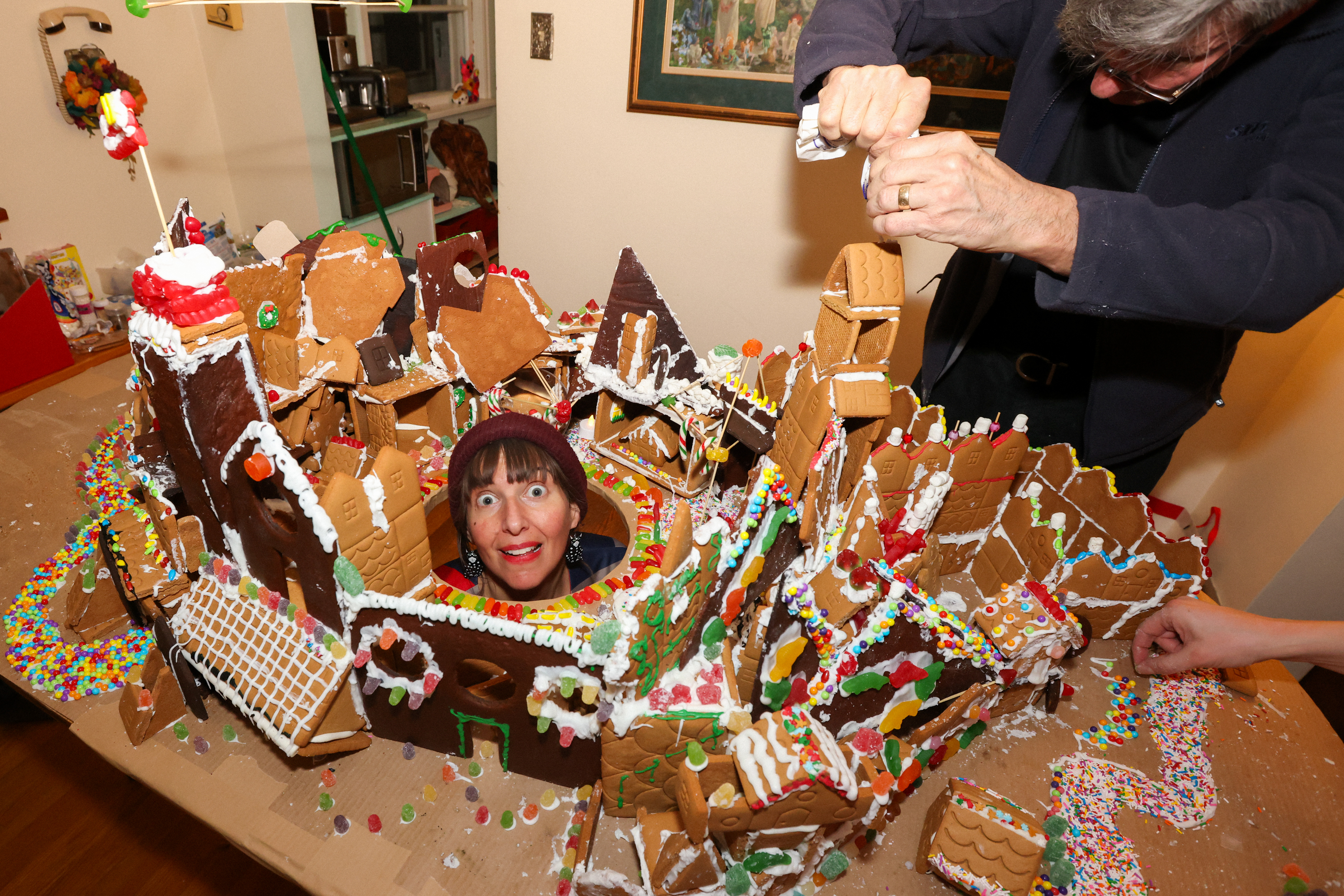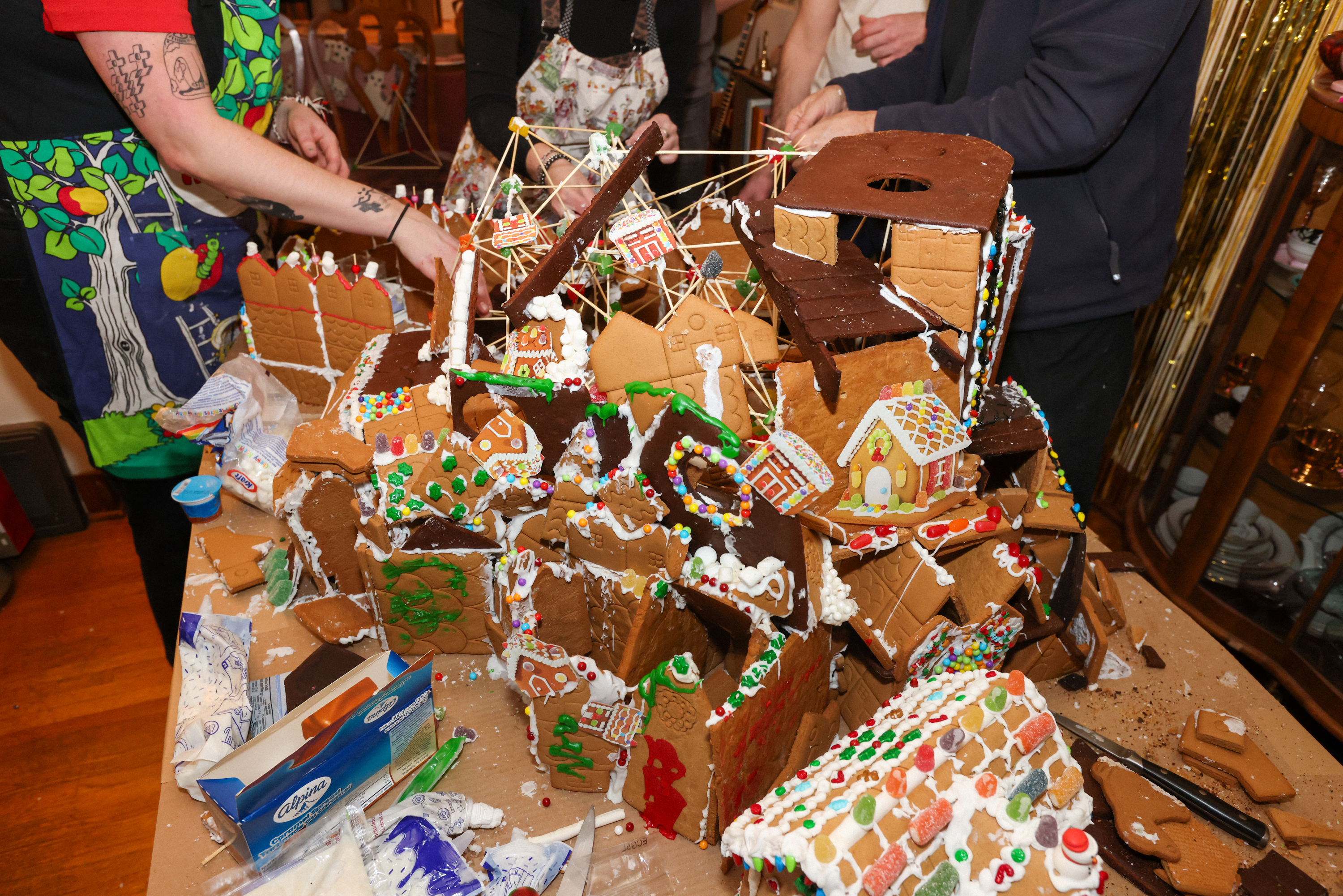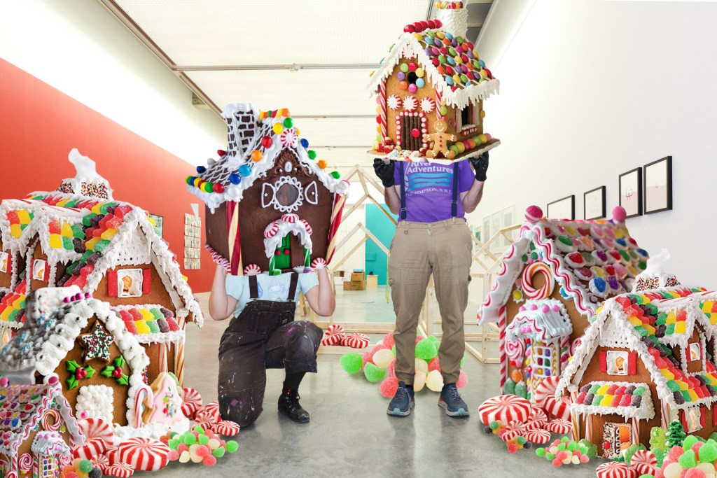 For many years, we’ve had a dream. After Christmas is over, all of us buy up as many discounted gingerbread kits as we can find and build a giant gingerbread superstructure together – big enough to crawl inside. This year, we tried to make that dream come true… with chaos & collaboration.