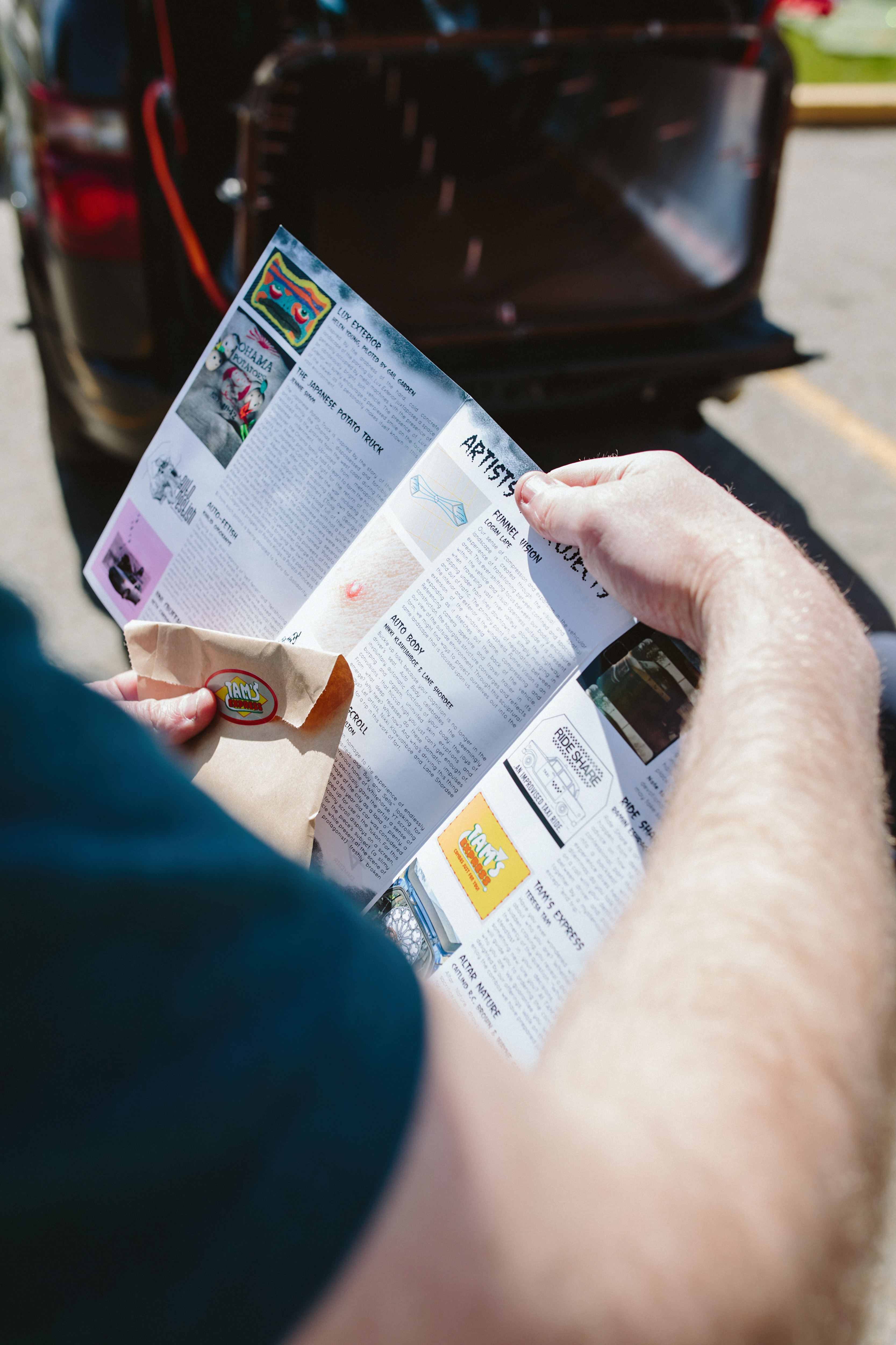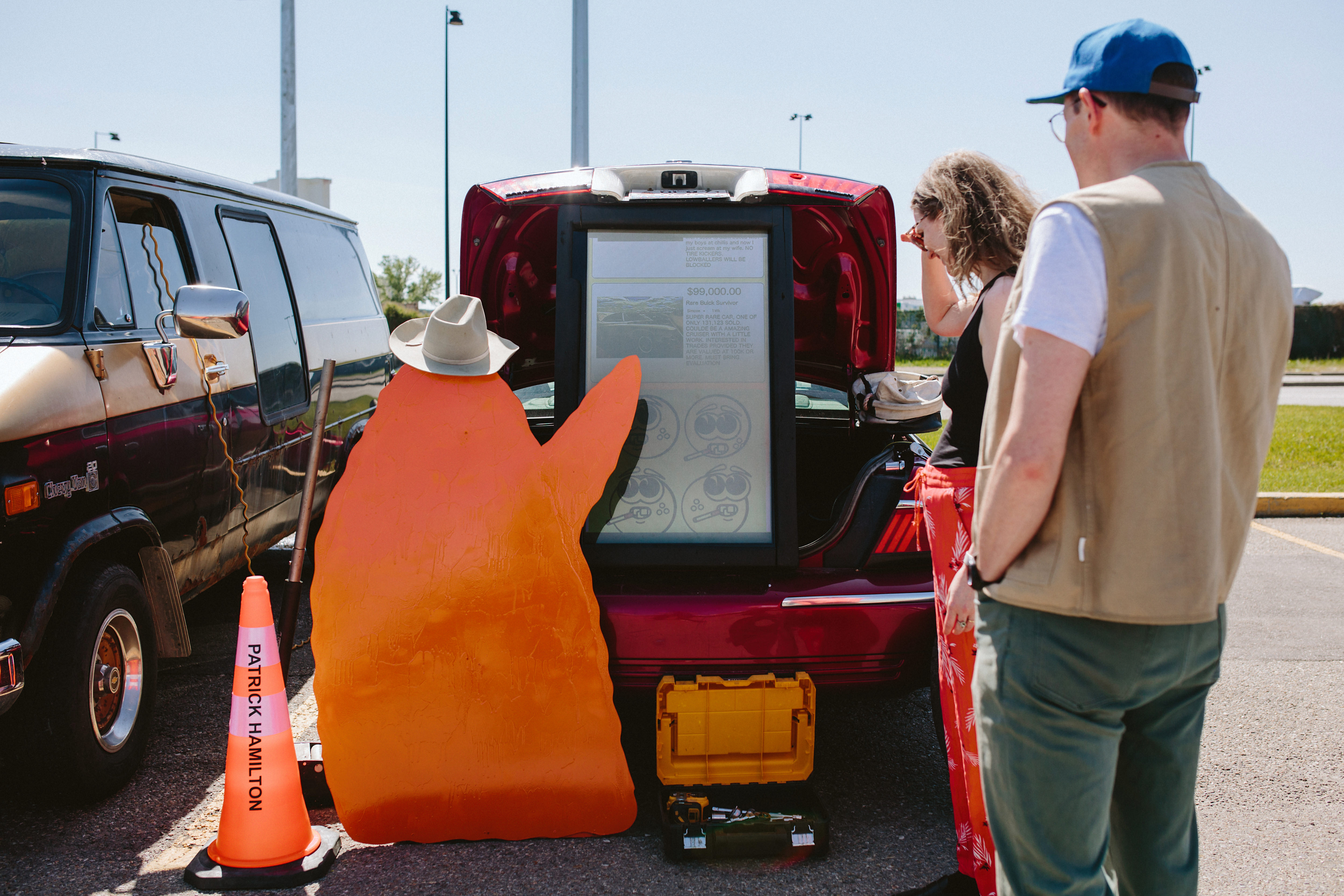 On May 24 & 25, 2025, a mobile exhibition of 11 artist-driven cars toured the sprawling parking lots of Calgary/Mohkinstsis, transporting strange, subversive, and satirical artworks in a motorcade of cars.
