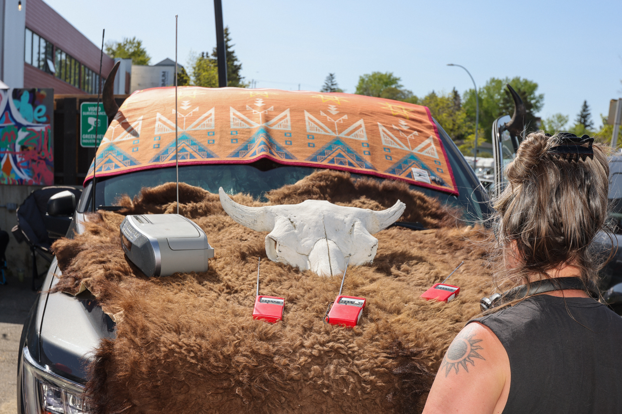 The streets, parking lots, and highways of Calgary are located on the traditional territories of the people of Treaty 7 in Southern Alberta, which includes the Blackfoot Confederacy, the Tsuut’ina First Nation, the Stoney Nakoda, and the Metis Nation of Alberta, Districts 5 & 6. Roads and car infrastructure has had profound impacts on the landscape and displaced many Indigenous communities in this region, past and present. As we drive Deerfoot, Crowchild, Tsuut’ina Trail, and other highways, we acknowledge how these roads came to be named for the histories they were often attempting to pave over. We share these roads with gratitude for the land beneath and a share responsibility for better routes ahead.